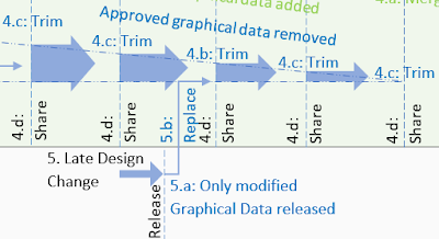 5.a: Following change approval, the new and modified geometry solely of the design change is released, (by the designer) to the Curator. The designer will provide detailed information about the scope of the design change, and ideally the element unique identifiers of the geometry to be removed from the former design intent trade model.
