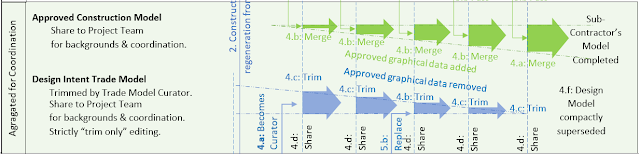 - Re-releasing (That is: exporting the visible graphical data elements in the view,) the updated design intent trade model to the CDE, for coordination and model background purposes only.